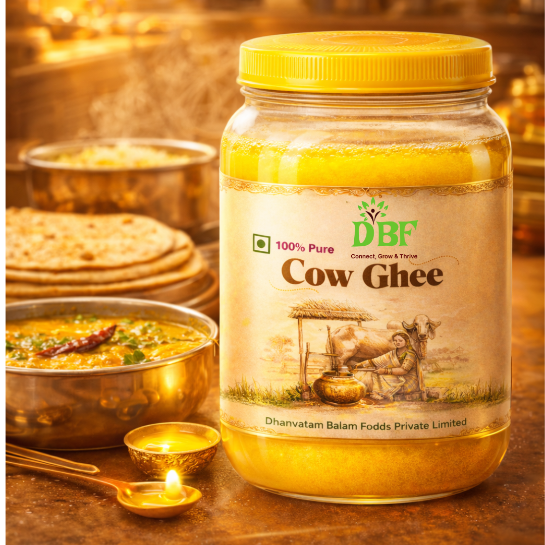 We at Dhanvatam Balam Foods Private Limited make sure our ghee is manufactured from pure and fresh milk by following an open process from farm to jar.